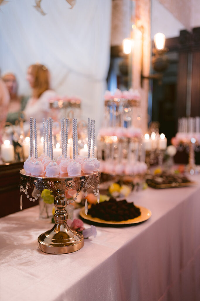 At the heart of it all was Erin, the bride’s mother, the quiet orchestrator of wonder. Her hands shaped each moment with tenderness: invitations designed with care, tables adorned in family silver, sweets wrapped in pearls and pink ribbons. Her artistry breathed life into the vision, turning celebration into poetry, and memory into legacy.